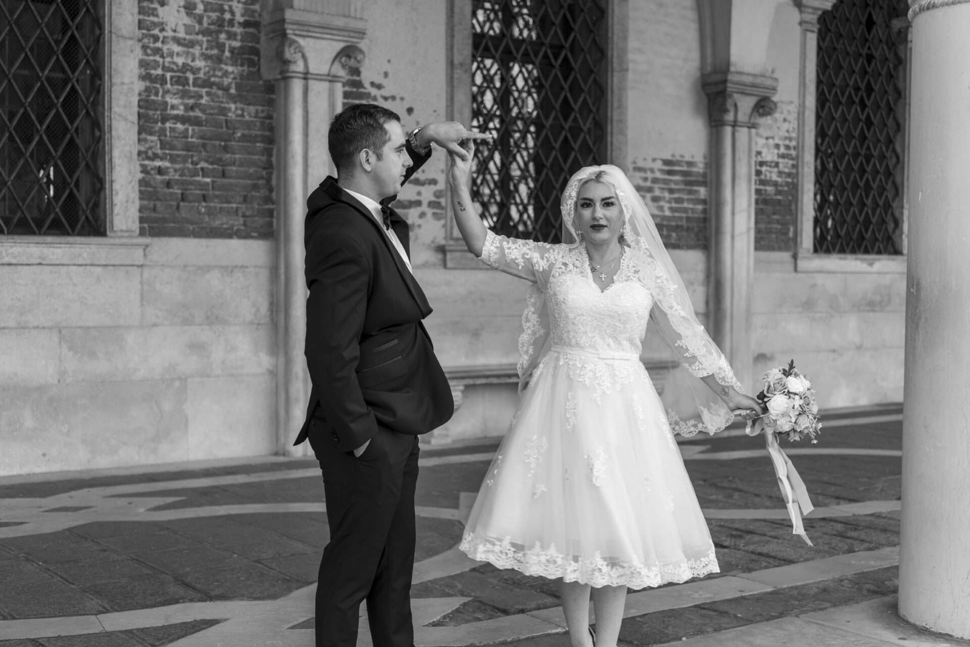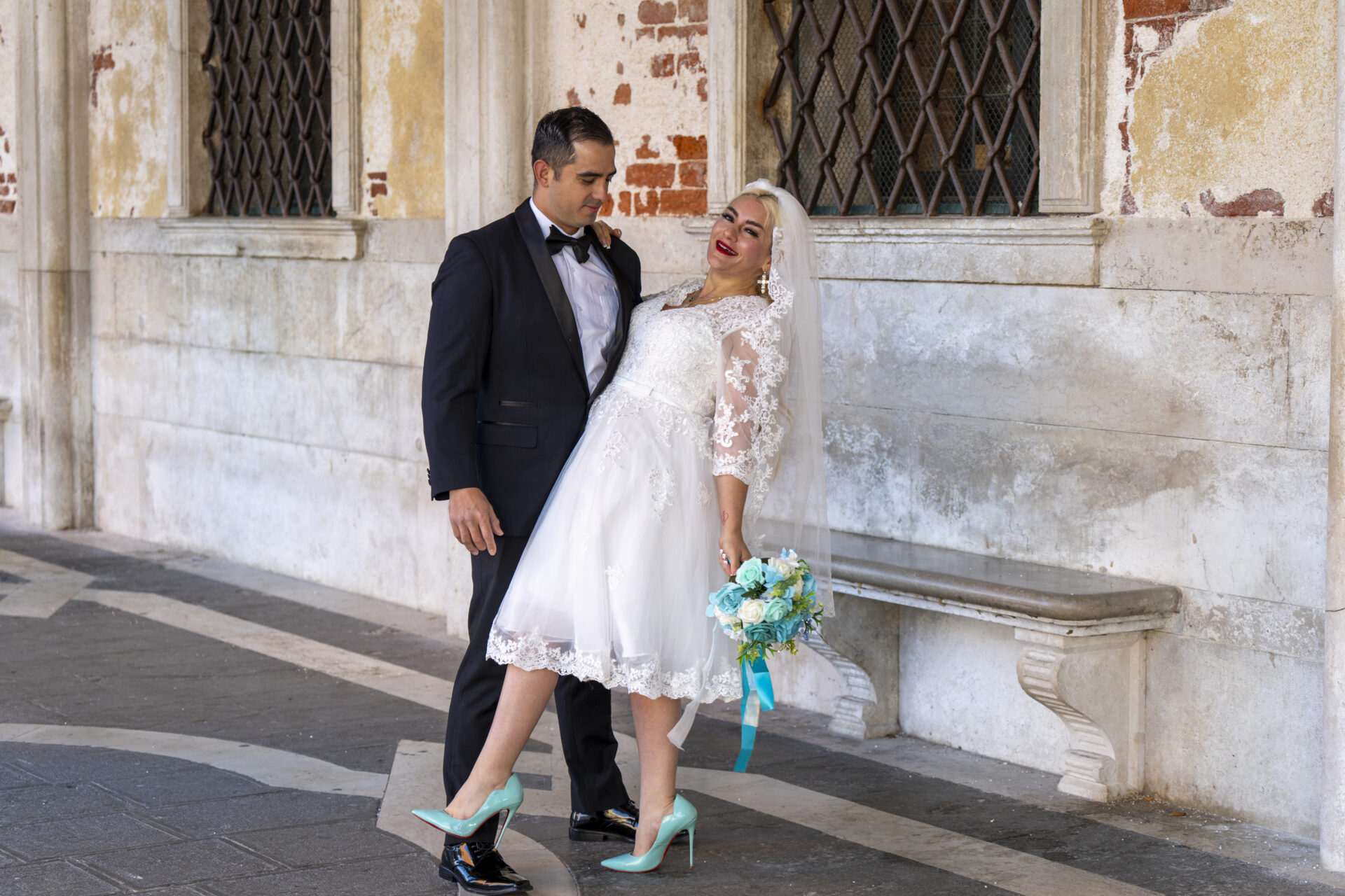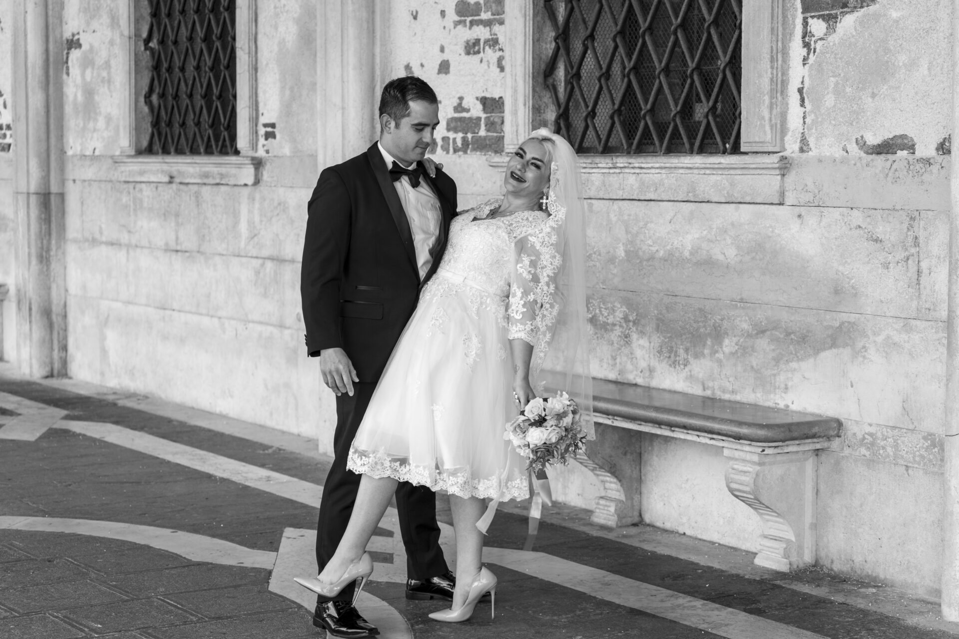 Romantische Porträts im morgendlichen Venedig.