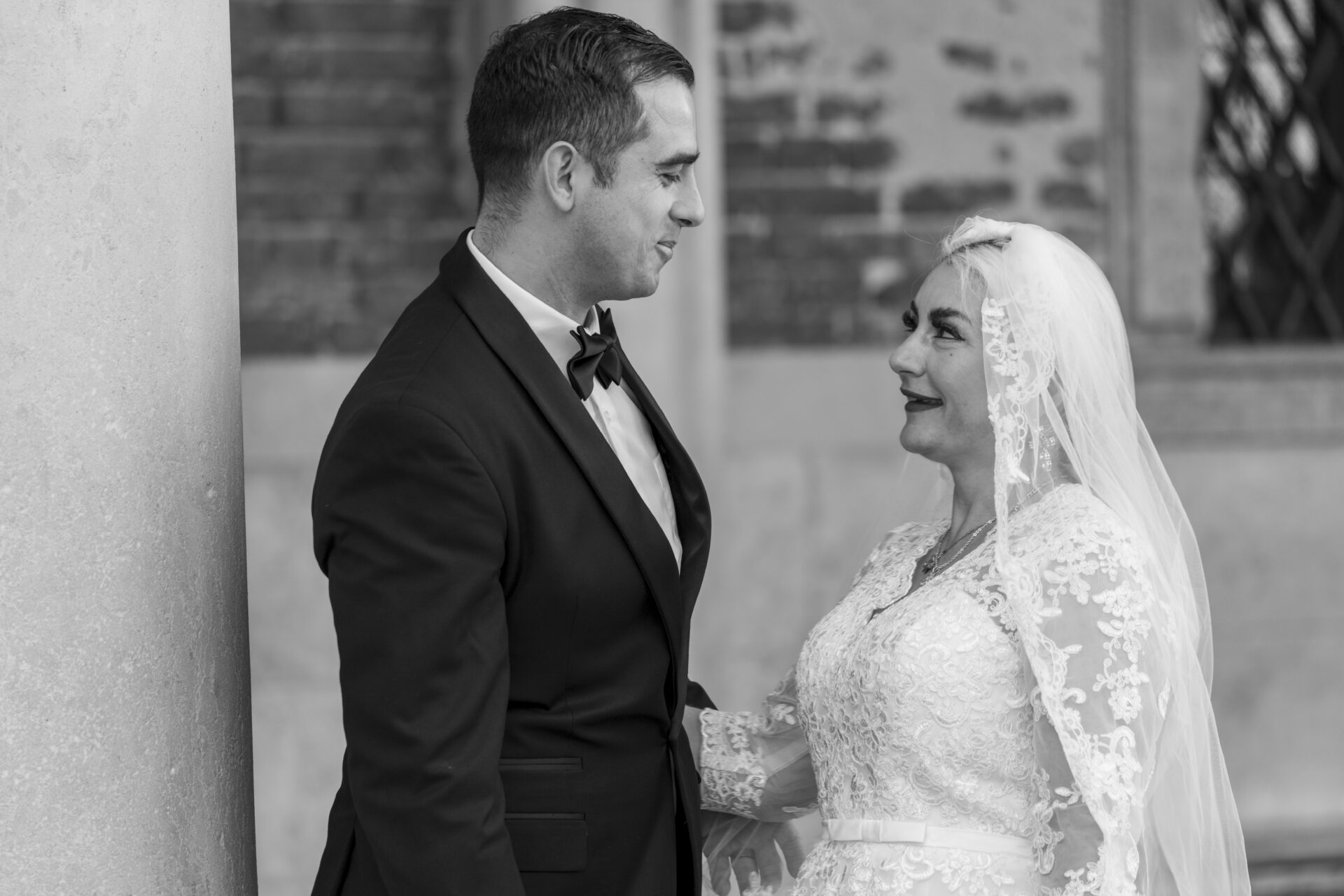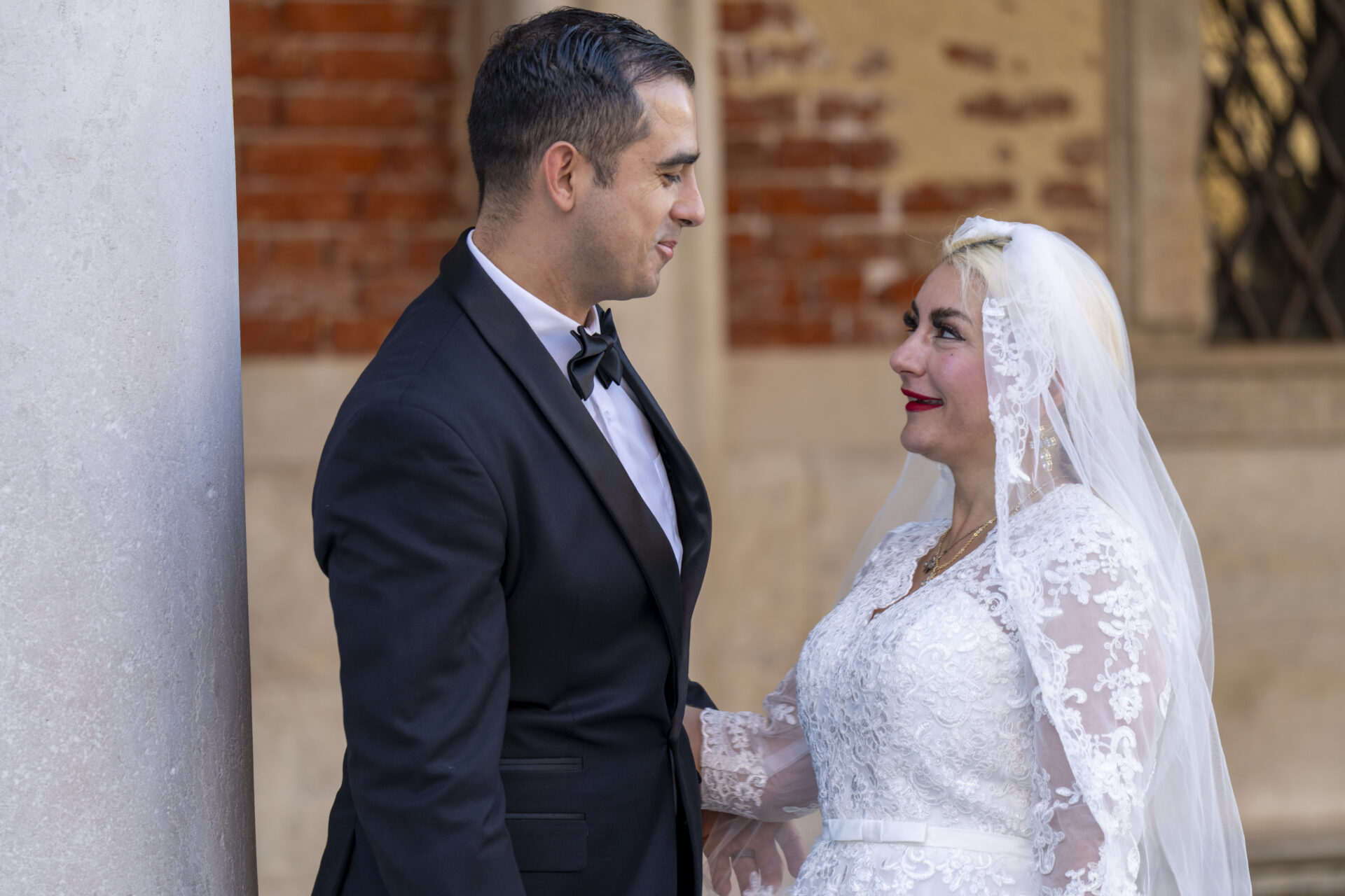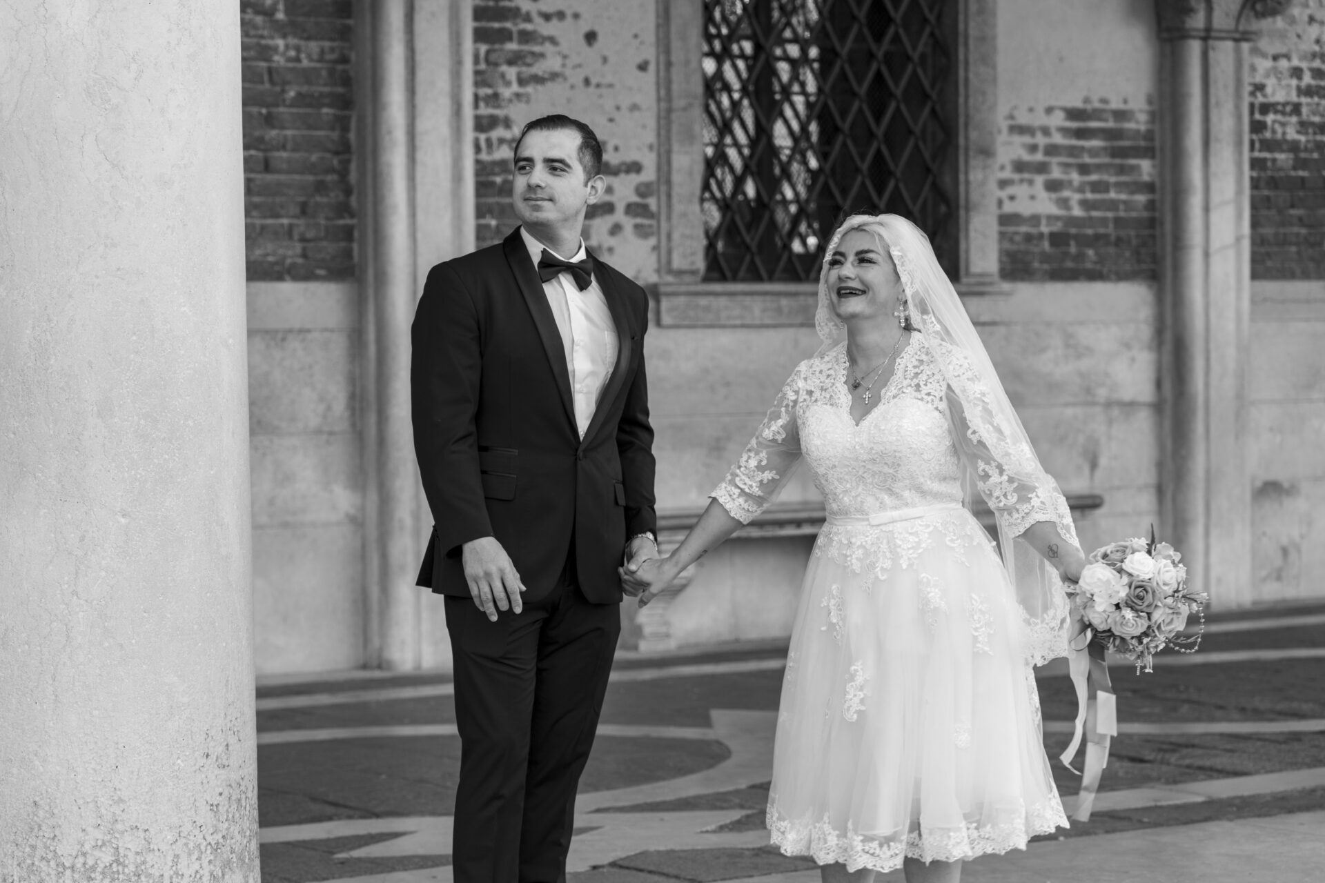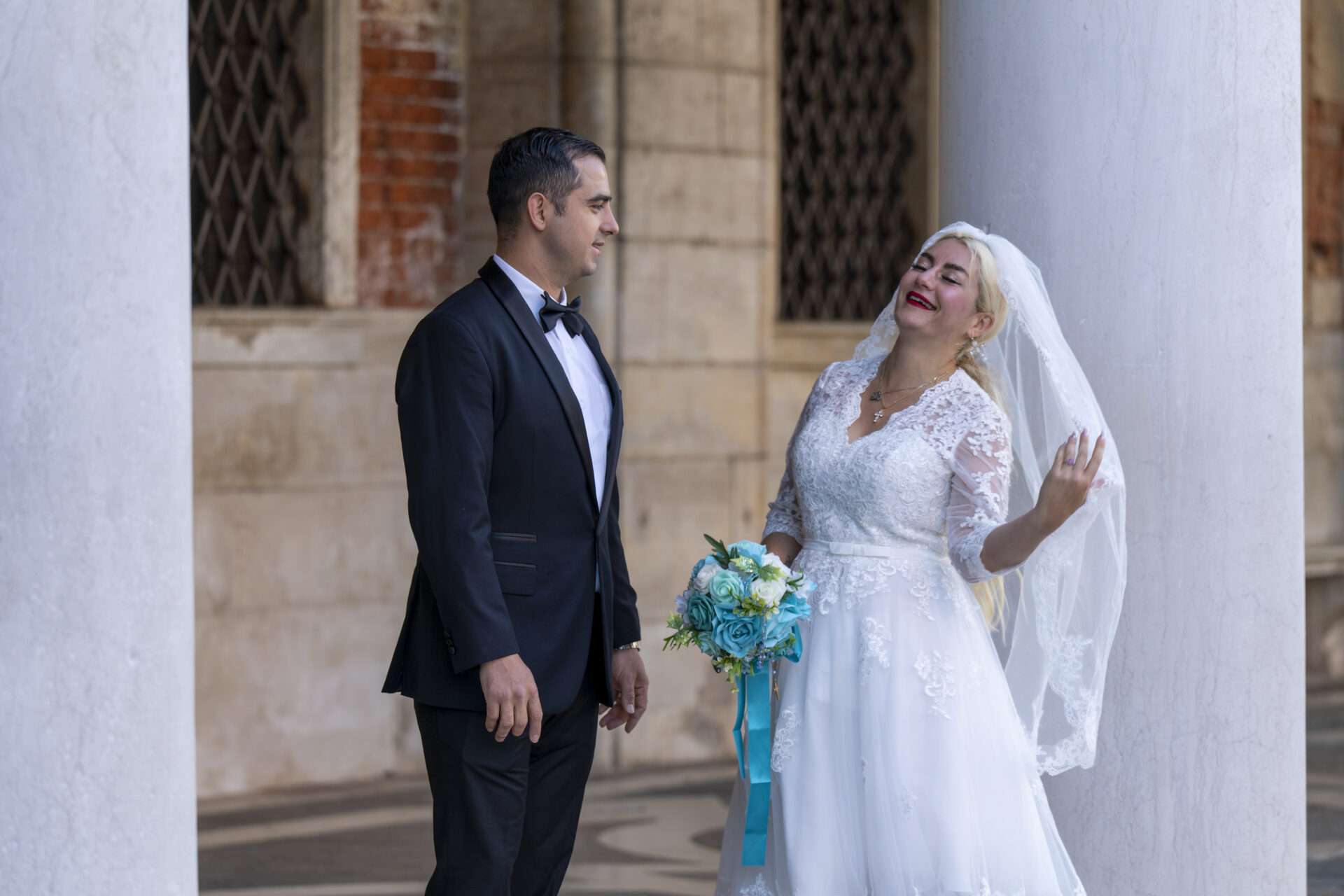 Romantische Porträts im morgendlichen Venedig.
